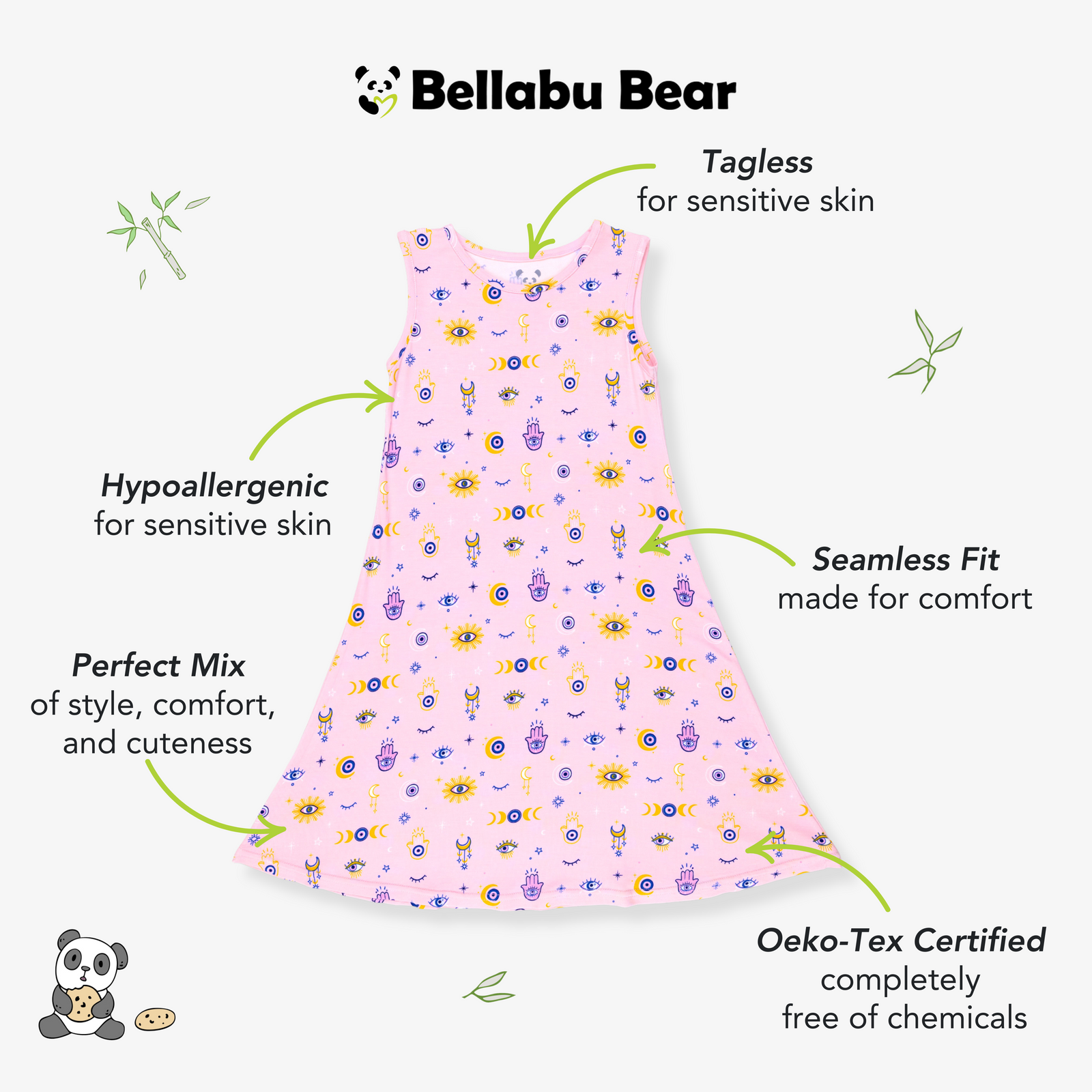 Bamboo fabric is like a gentle hug for your skin—hypoallergenic, breathable, and oh-so-soft. Say goodbye to irritation and hello to all-day comfort! Our bamboo apparel is thoughtfully designed to care for sensitive skin, so your little one feels good from morning to afternoon.