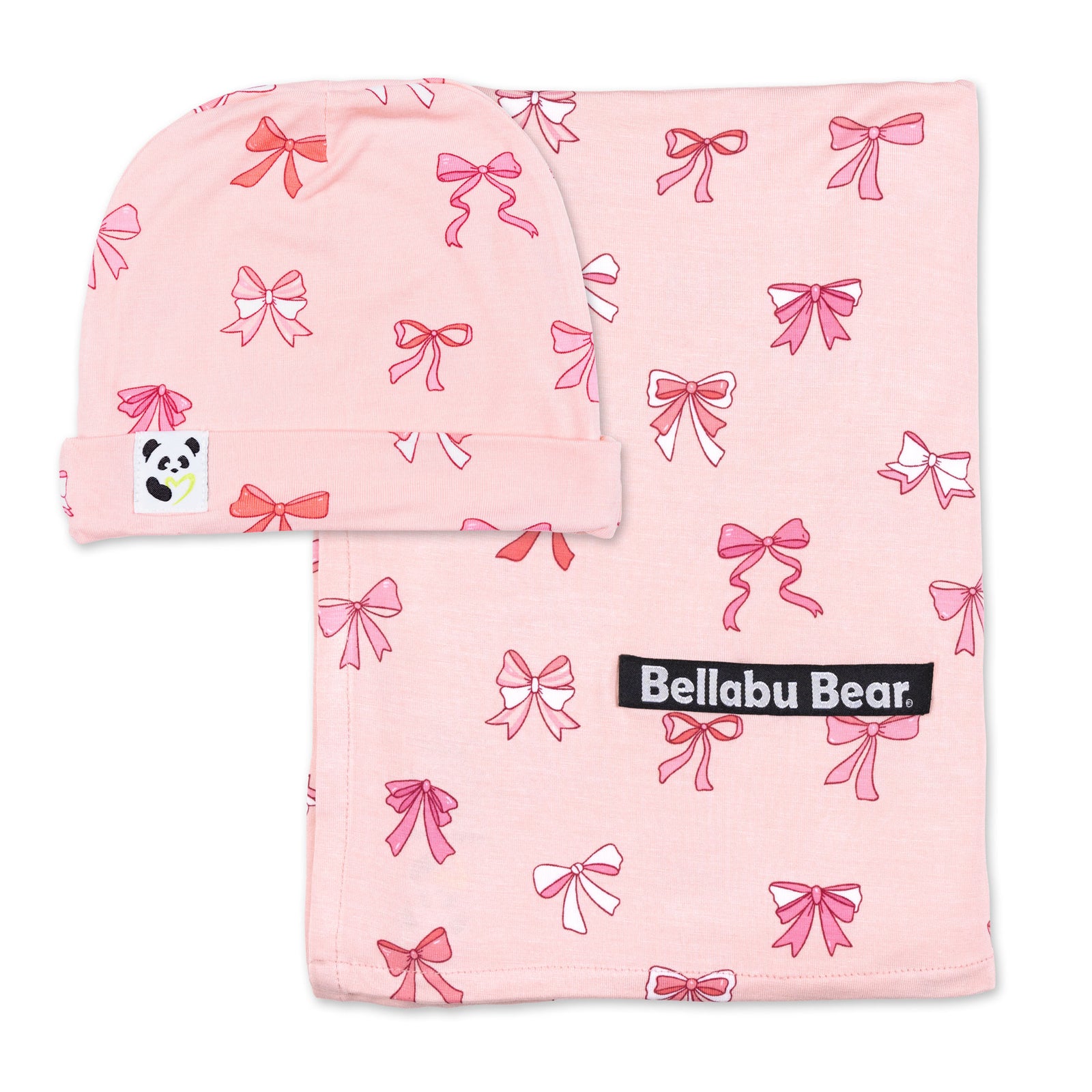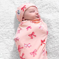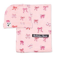 Wrap your little one in ultimate comfort with the Take A Bow Bamboo Swaddle & Beanie Set! Crafted from ultra-soft, breathable bamboo fabric, this set is perfect for keeping your baby cozy and snug. The gentle, eco-friendly material is perfect for sensitive skin, offering a hypoallergenic and soothing experience. Featuring a cute hand-drawn bow design, the swaddle and beanie set is as adorable as it is functional, making it a must-have for your baby’s wardrobe. Whether it’s for naptime, bedtime, or those sweet moments in between, the Take A Bow Bamboo Swaddle & Beanie Set ensures your baby stays wrapped in warmth and style!