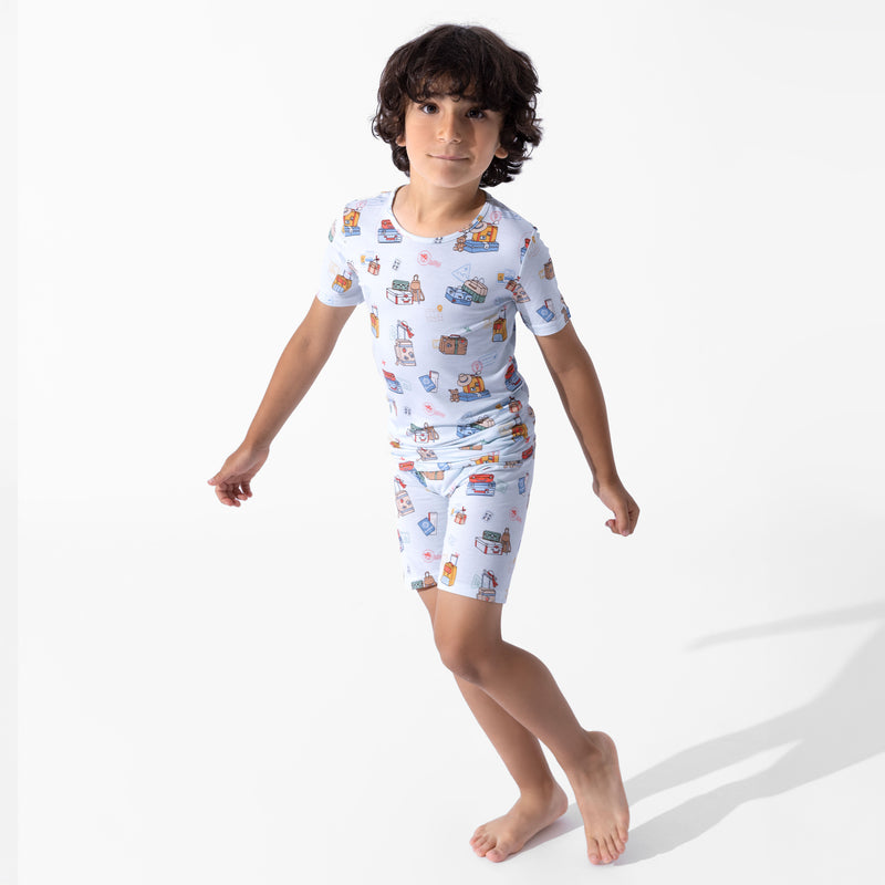 Vintage Suitcases Bamboo Kids Pajama Short Set