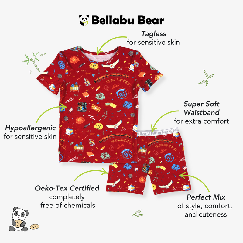 Get ready for a magical night’s sleep with our Hogwarts Express Bamboo Kids Pajama Short Set! Whether your little witch or wizard is dreaming of their first ride to Hogwarts or planning adventures in the Forbidden Forest, this enchanted PJ set is the perfect uniform for bedtime mischief. Made from ultra-soft, breathable bamboo fabric, it keeps kids cool through summer nights and cozy during storytime spells. Featuring a charming Hogwarts Express print straight from Platform 9¾, the set includes a comfy short-sleeve top and elastic-waist shorts—ideal for magical dream-hopping and pajama-party duels. Whether they're in Gryffindor, Slytherin, Ravenclaw, or Hufflepuff, these pajamas are sure to cast a spell of comfort and style!