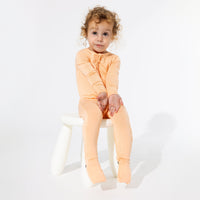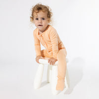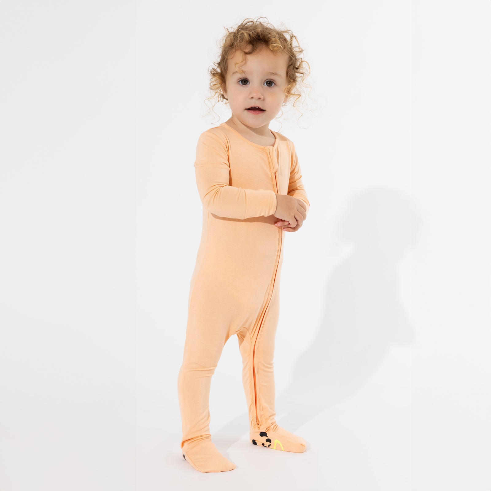 Introducing our Peach Fuzz Bamboo Convertible Footie – the epitome of sweetness and comfort for your little one's bedtime adventures! Crafted from the softest bamboo fabric, this footie offers a gentle touch against delicate skin, ensuring a cozy and peaceful night's sleep. The delightful peach fuzz design adds a touch of whimsy to bedtime, while the convertible design allows for easy changes and versatile styling options. With its breathable fabric and eco-friendly materials, this footie is perfect for keeping your baby comfortable all night long. Say goodbye to fussiness and hello to peaceful nights with our Peach Fuzz Bamboo Convertible Footie. Shop now and let the bedtime magic begin!