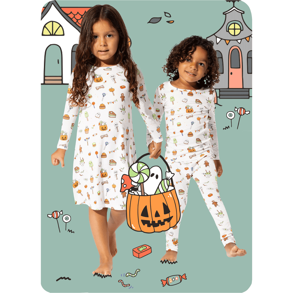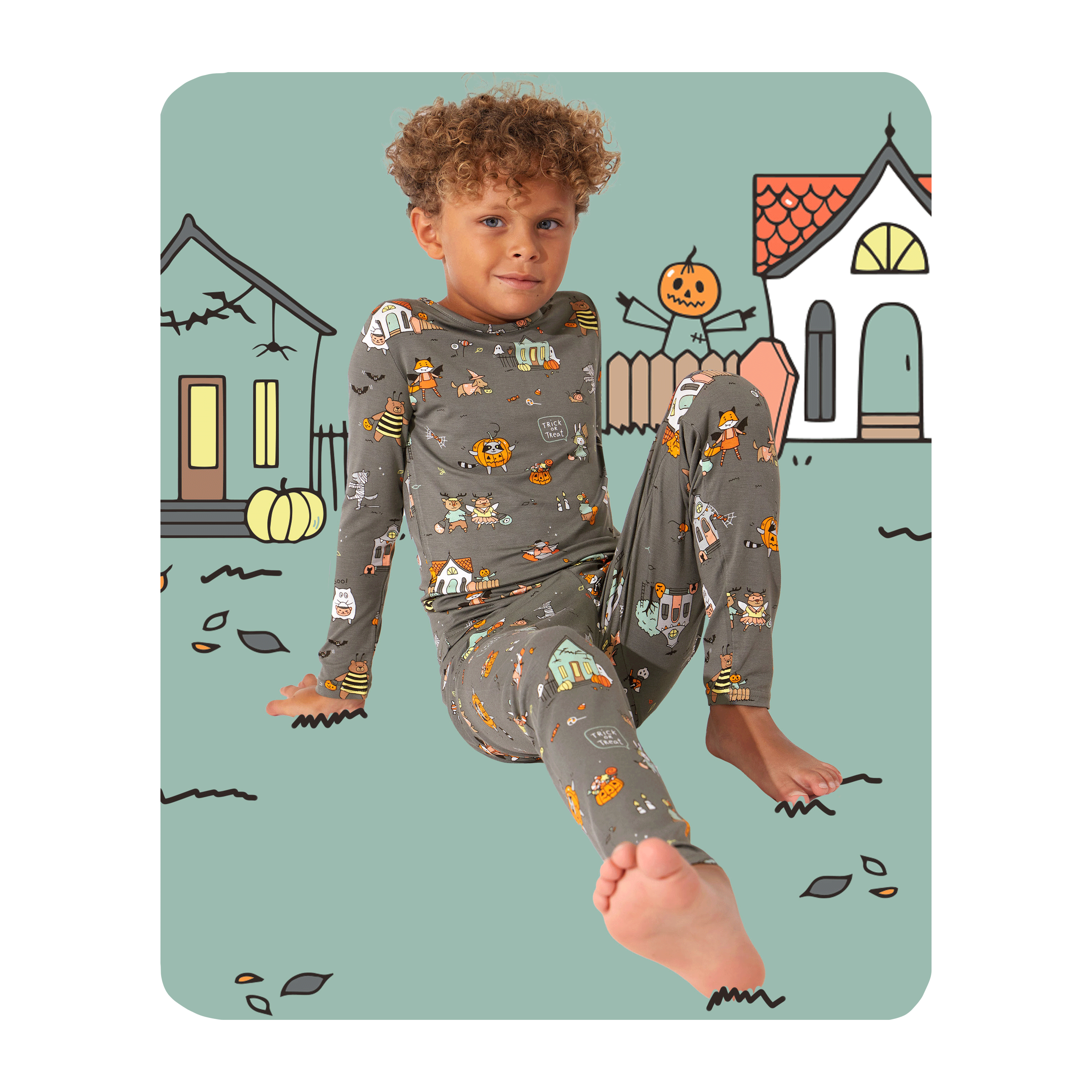Step into a world of spooky comfort with our Halloween Treats & Trick or Treaters Bamboo Pajamas Collection! Embrace the spirit of Halloween in style with soft and eco-friendly bamboo fabric. From ghostly delights to pumpkin patches, each pajama set promises cozy nights and festive fun. Perfect for little goblins and witches alike, these pajamas ensure a scare-free sleep and a memorable Halloween season. Shop now and treat yourself to the magic of bamboo comfort!
