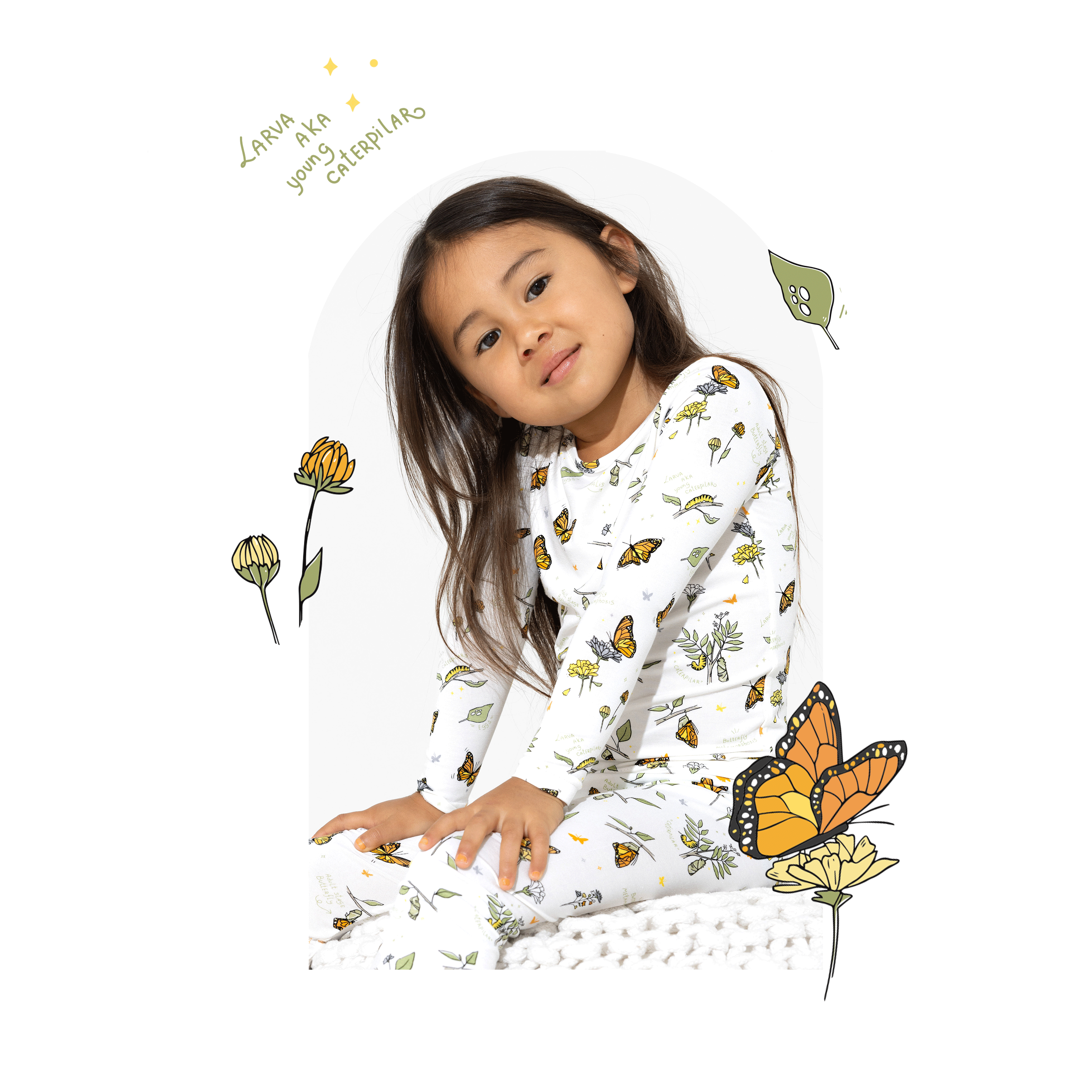 Introducing the Monarch Butterfly & Mushroom Life Cycle Pajamas Collection 🌿🦋 – a tribute to nature’s beauty and resilience. Our hand-drawn Monarch butterflies metamorphosis and mushroom seed life cycle prints captures the essence of life cycles on our soft, eco-friendly pajamas.