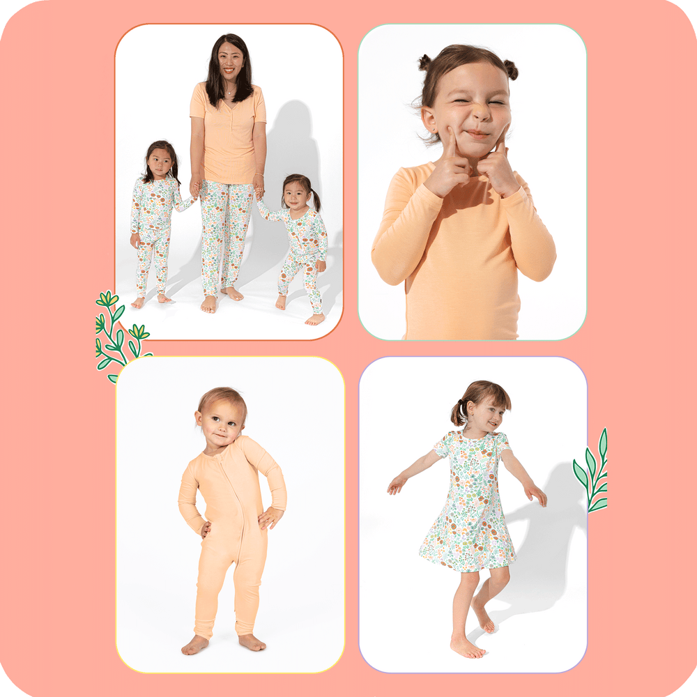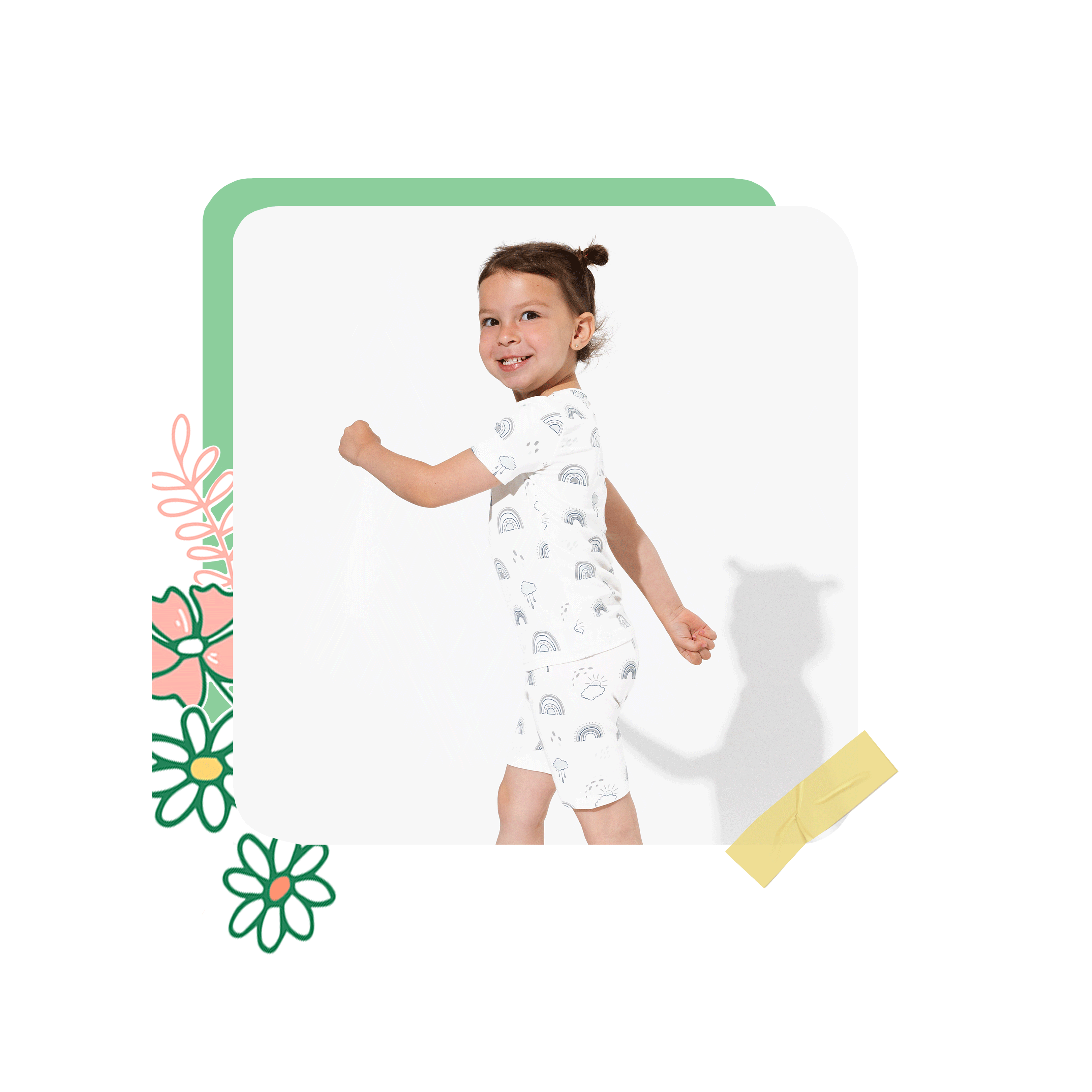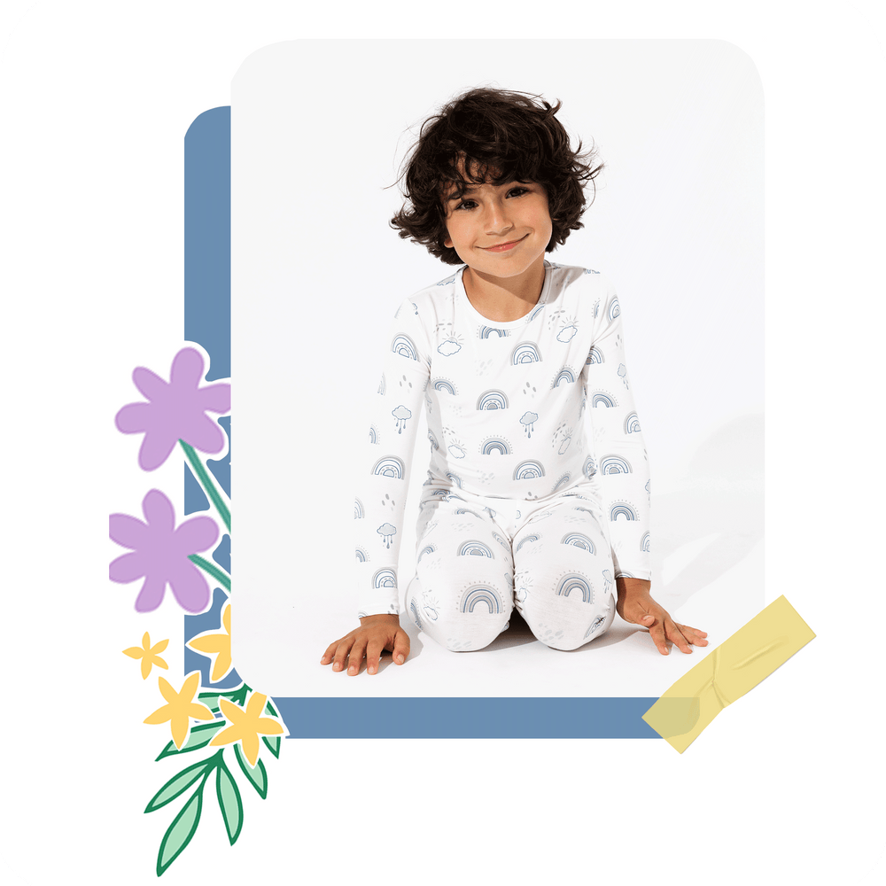These charming outfits are not just about bedtime; they're a celebration of lazy mornings, backyard adventures, and endless play. Crafted from bamboo for coolness and softness, they're ideal for warm summer days and breezy nights. With delightful floral patterns and whimsical grey rainbows, every moment becomes a colorful, joyful experience.