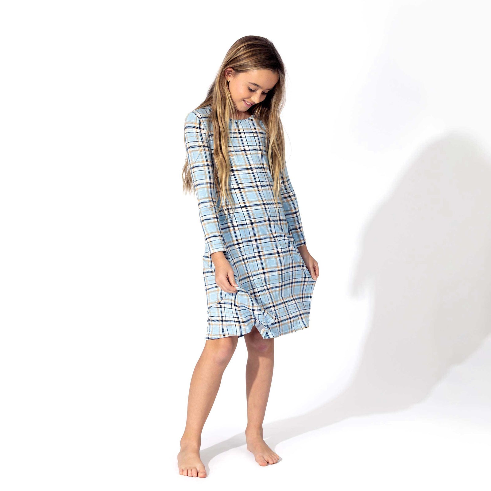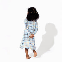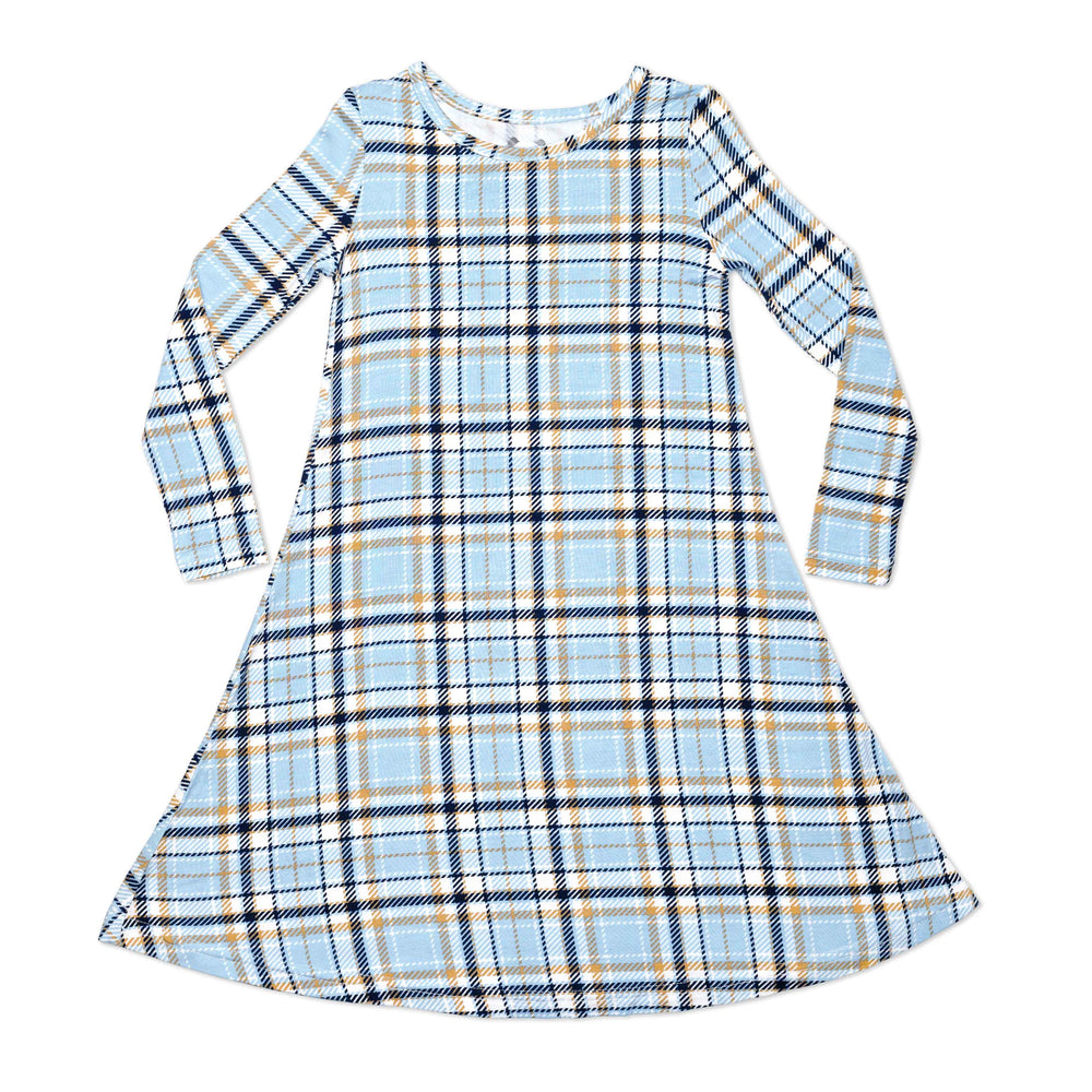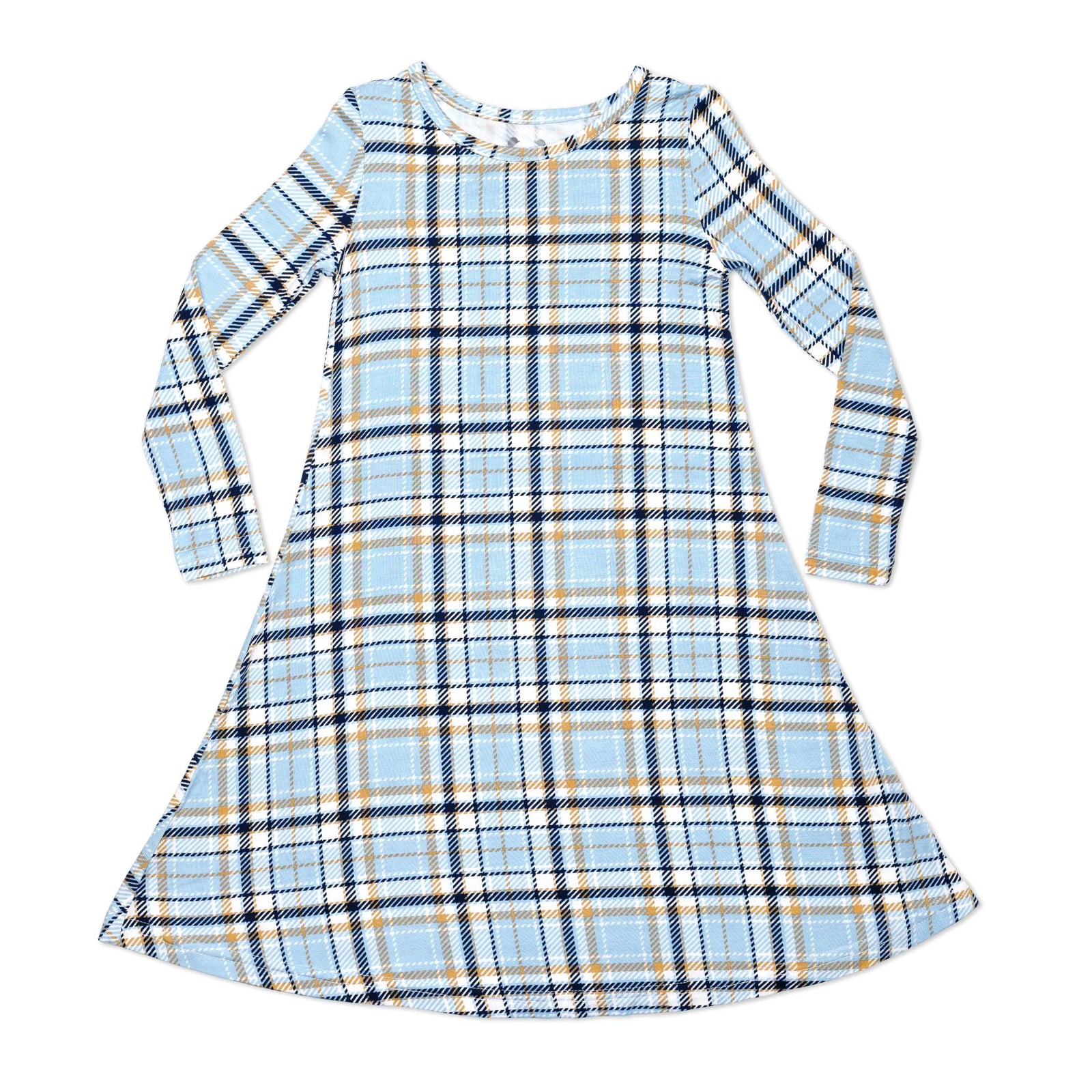 Holiday Plaid Blue Bamboo Girls' Long Sleeve Dress