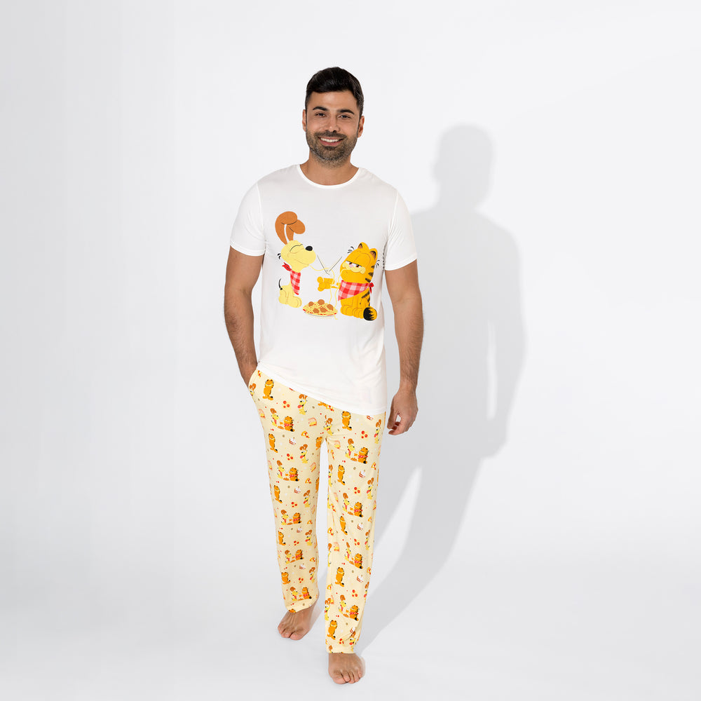 As you slip into these cozy threads, you can almost hear Garfield's rumbling tummy cheering you on. With every munch and crunch, you're not just indulging your appetite; you're joining Garfield in a nocturnal feast of comfort and contentment.