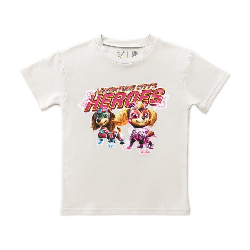 Get ready for paws-itively fun adventures with our PAW Patrol: The Mighty Movie Girl Pups Bone White Bamboo Terry Daywear Kids T-Shirt! Crafted from soft and sustainable bamboo fabric, this tee combines comfort with eco-friendly style. Featuring your favorite girl pups from the Mighty Movie, it's perfect for little adventurers everywhere. Let your child's imagination soar – order now and embark on an adventure in style!