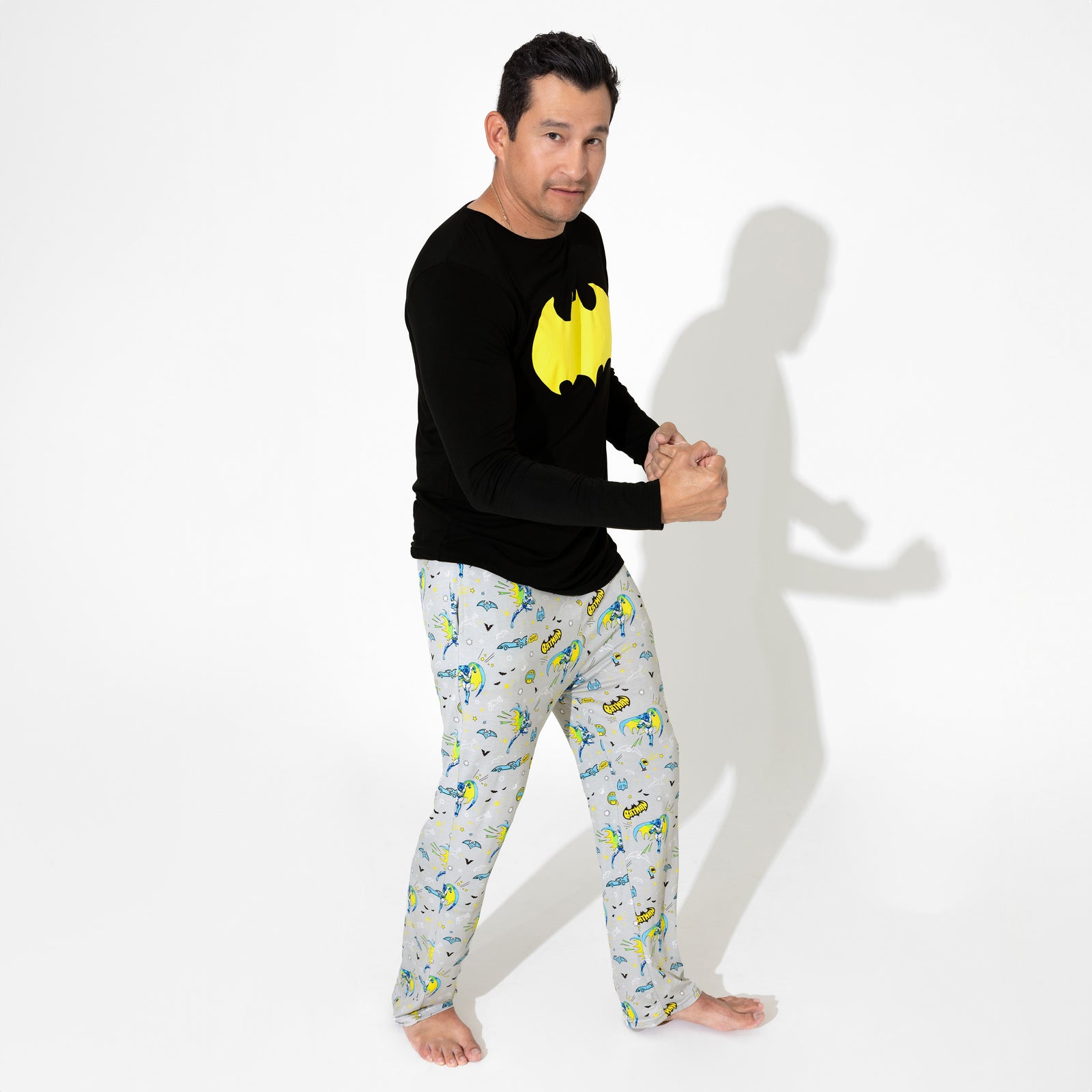 Get ready to relax in superhero style with our Batman Bamboo Men's Pajama Set! This stylish set features iconic Batman graphics, perfect for the man who embraces his inner hero. Crafted from ultra-soft, breathable bamboo fabric, these pajamas provide exceptional comfort and are gentle on the skin. The relaxed fit allows for easy movement, making them ideal for lounging at home or cozying up for a movie night. With a classic design that combines practicality with a touch of whimsy, this pajama set is perfect for fans of all ages. Whether you're fighting crime in your dreams or just enjoying a restful night, the Batman Bamboo Men's Pajama Set keeps you comfortable and stylish. Elevate your bedtime routine and celebrate your love for Gotham’s guardian with these must-have pajamas!