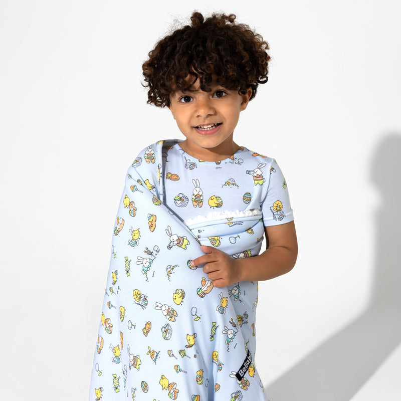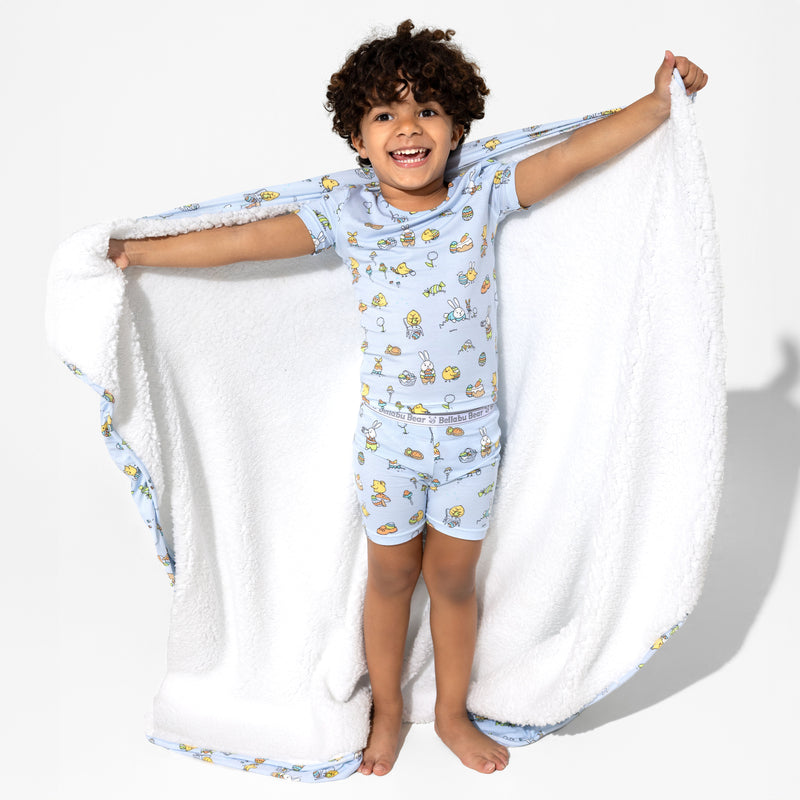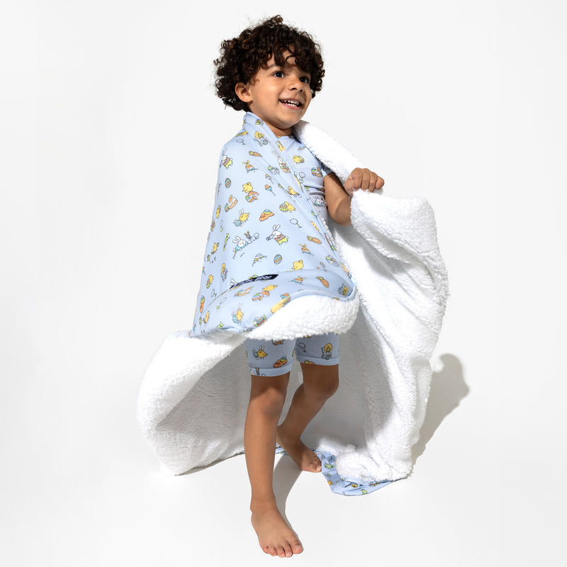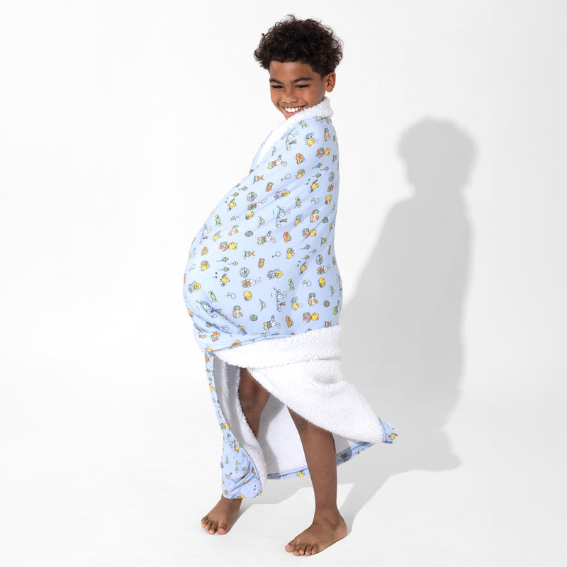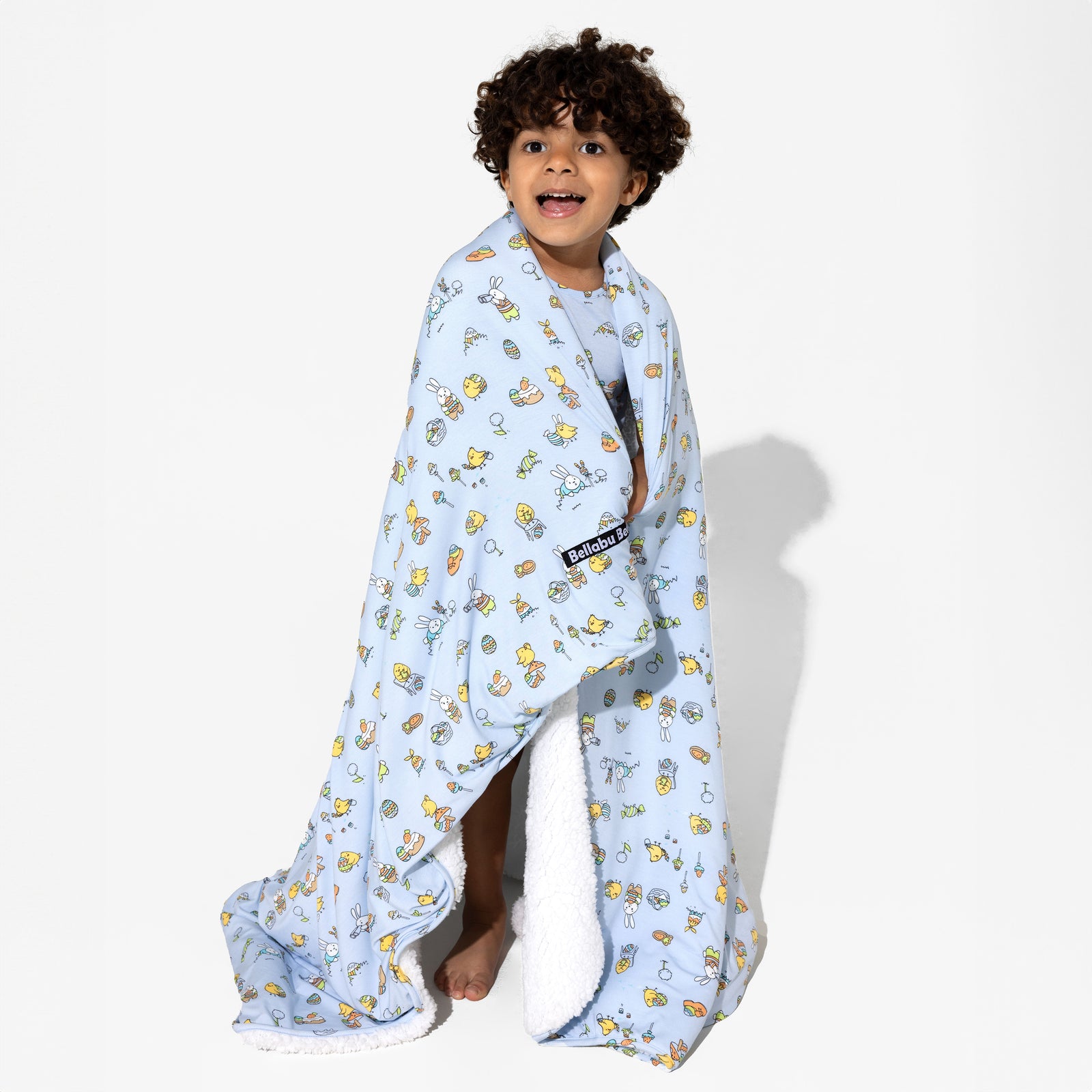 Wrap your little one in cozy comfort with our Easter Bunnies Blue Bamboo Blanket! Made from ultra-soft, eco-friendly bamboo fabric, this blanket is perfect for snuggling up during Easter celebrations or on chilly spring nights. Featuring an adorable Easter bunny design in soft blue hues, it adds a touch of whimsy to any room. The naturally breathable and moisture-wicking bamboo fabric keeps your child warm without overheating, making it ideal for year-round comfort. Whether it’s draped over a bed, tossed on the couch, or used during nap time, this blanket will bring both warmth and joy. Hop into softness and sustainability this Easter with a blanket your little one will love to cuddle!