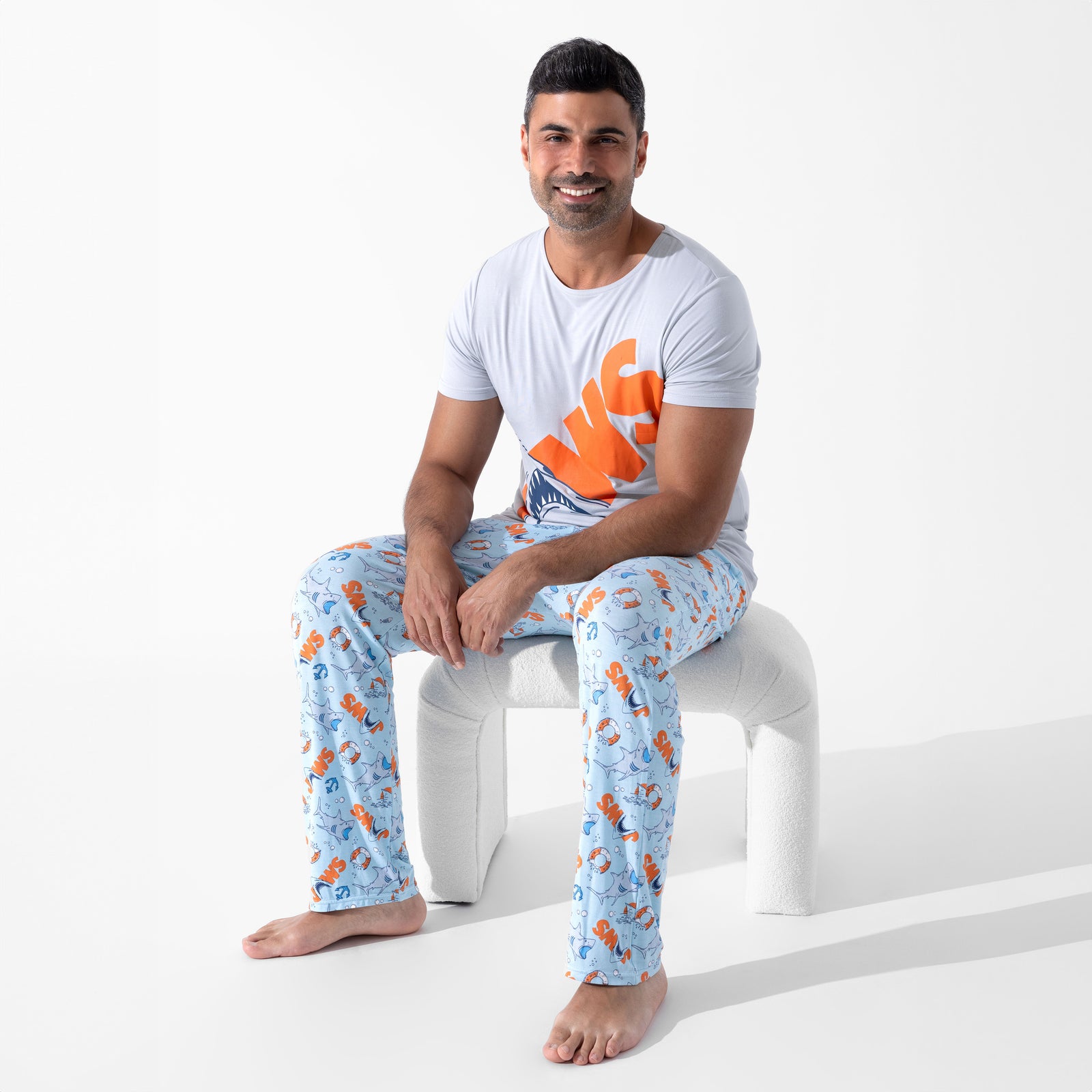 JAWS Bamboo Men’s Pajama Set—sleep like a predator, dream like a shark.