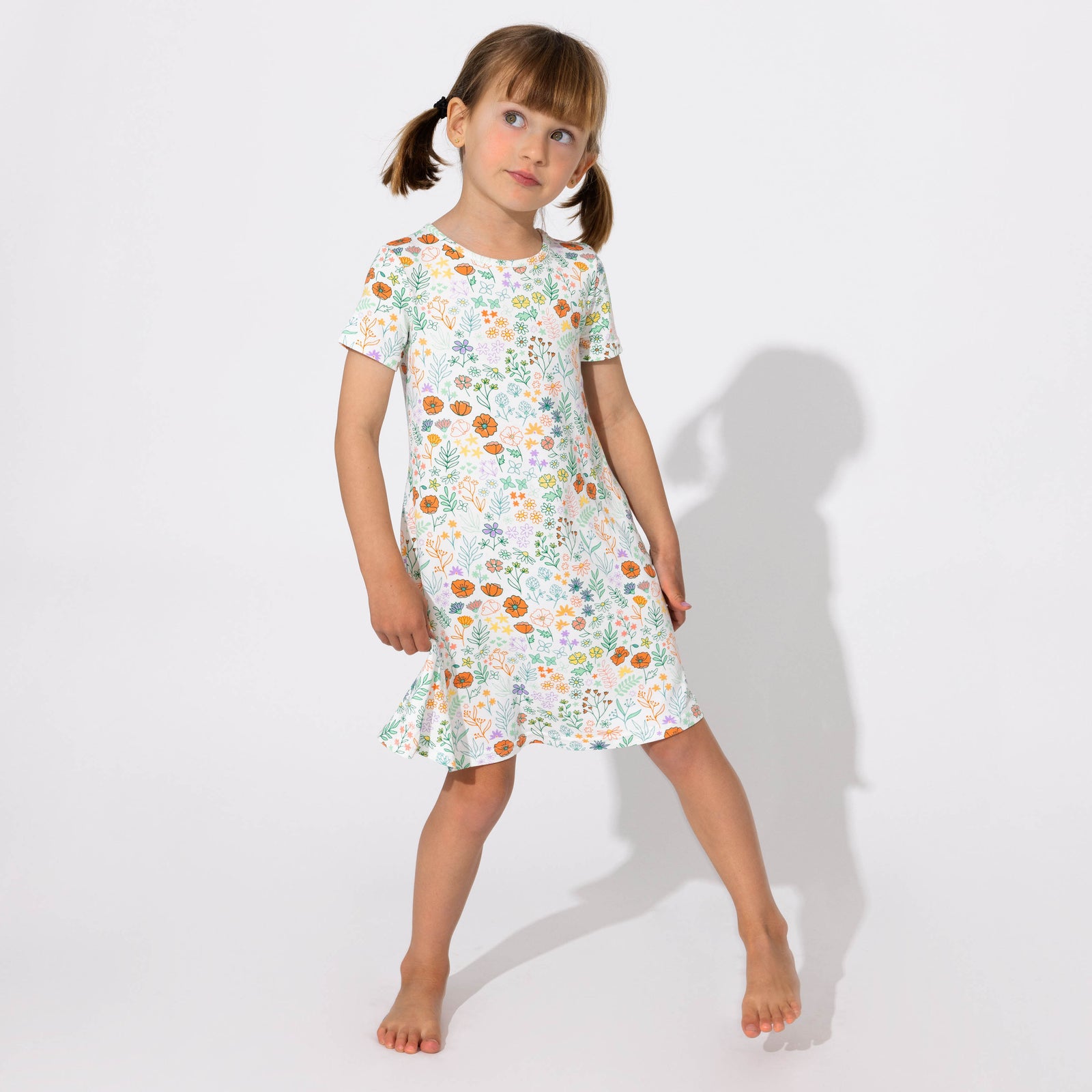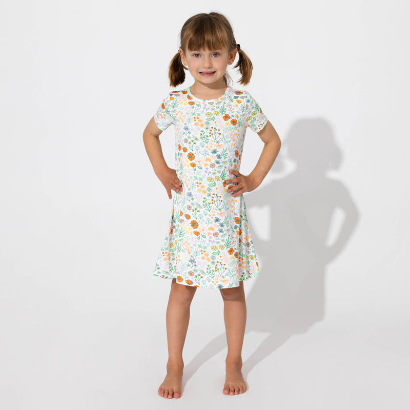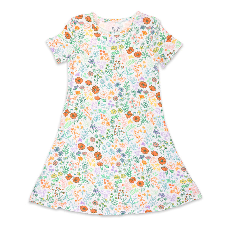 Summer Floral Bamboo Girls' Short Sleeve Dress