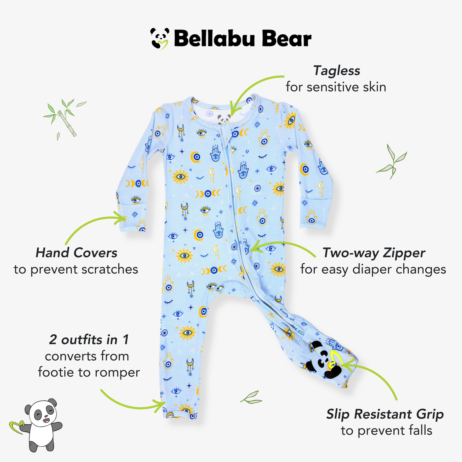 • Bamboo Benefits: Discover the wonders of bamboo – the softest fabric, breathable, thermo-regulating, hypoallergenic, and moisture-absorbing. Perfect for any climate and ideal for your baby's skin.