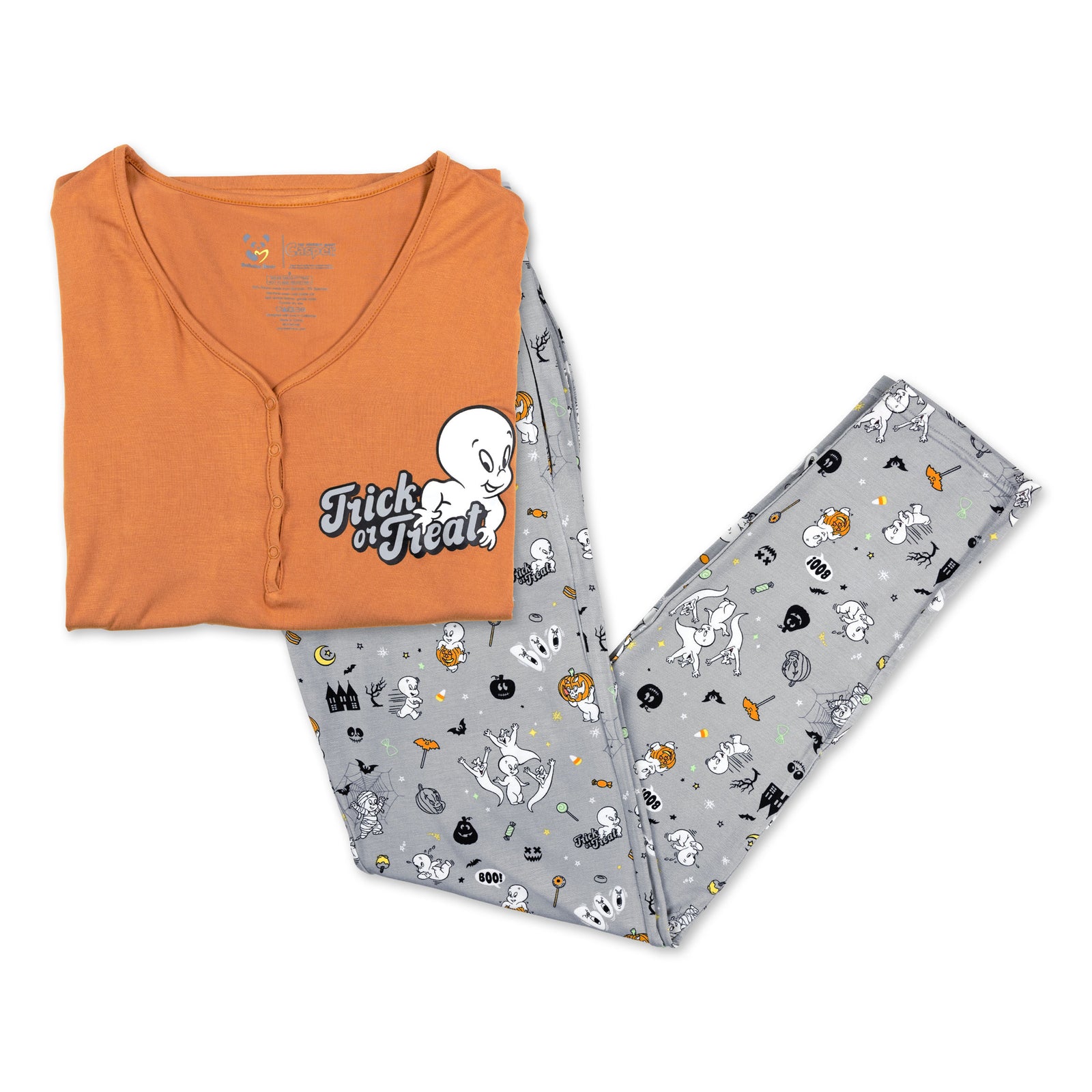 Embrace the Halloween Spirit with Casper Halloween Bamboo Women's Pajama Set! Get ready to celebrate the spookiest season in ultimate comfort with the Casper Halloween Bamboo Women's Pajama Set. Crafted from luxuriously soft, eco-friendly bamboo fabric, these pajamas offer a perfect blend of cozy warmth and breathable comfort. The whimsical Halloween-themed prints add a touch of festive fun, making them ideal for cozy nights in or Halloween-themed lounging. Designed with a relaxed fit and playful patterns, this pajama set is perfect for snuggling up with a good book, enjoying a Halloween movie marathon, or simply adding a bit of spooky charm to your bedtime routine. The bamboo fabric is gentle on the skin and kind to the planet, so you can feel good while looking great. Shop now to experience spooky comfort and stylish coziness with the Casper Halloween Bamboo Women's Pajama Set—your go-to choice for a magical Halloween season!