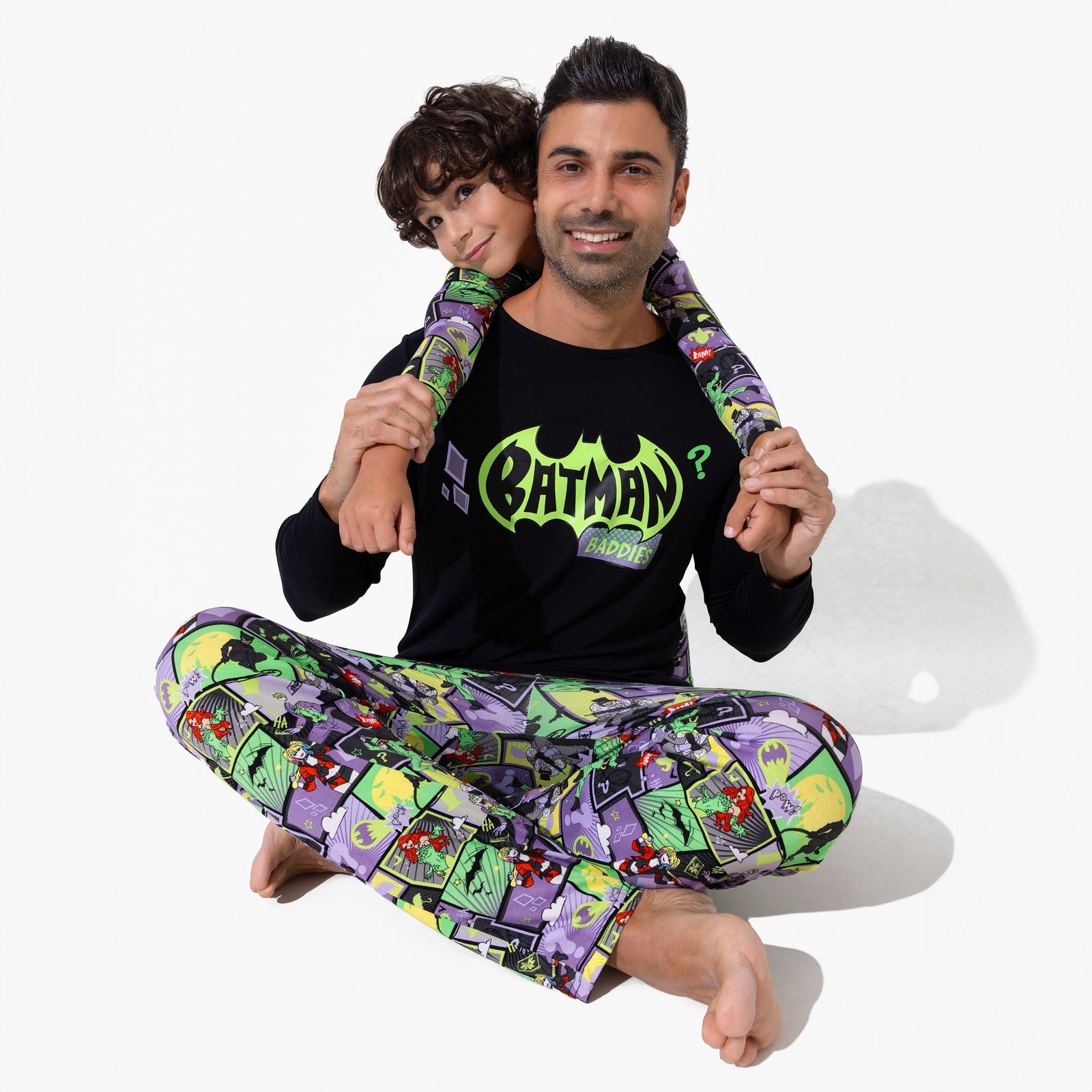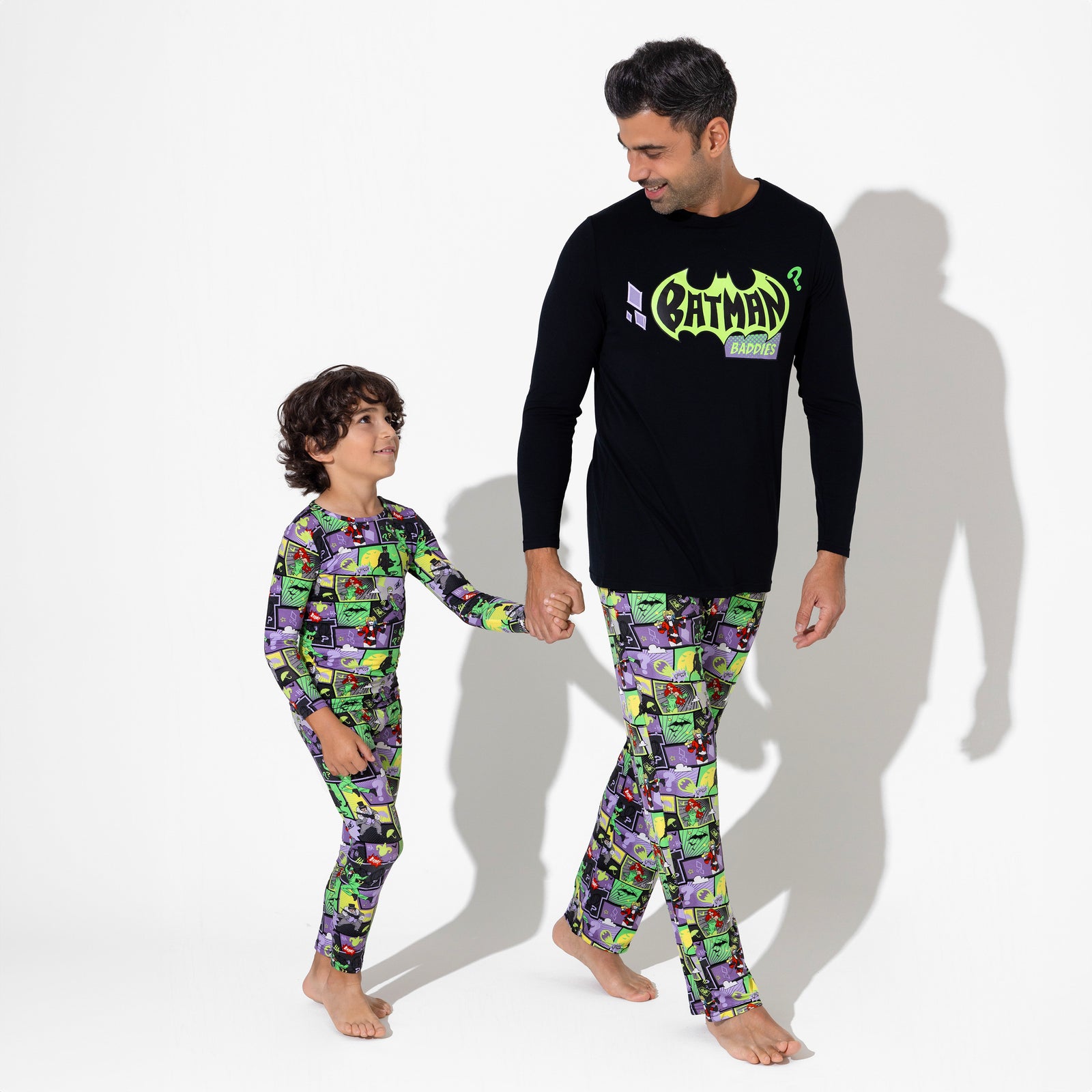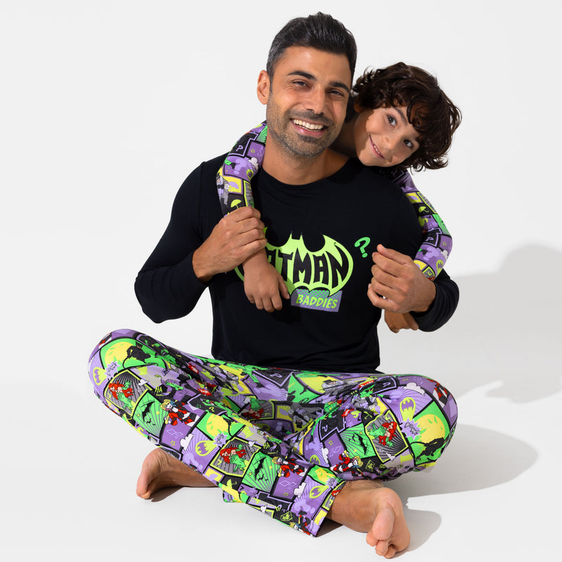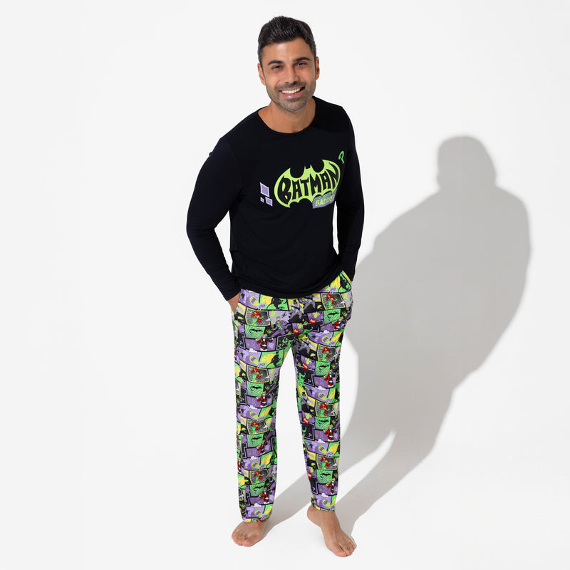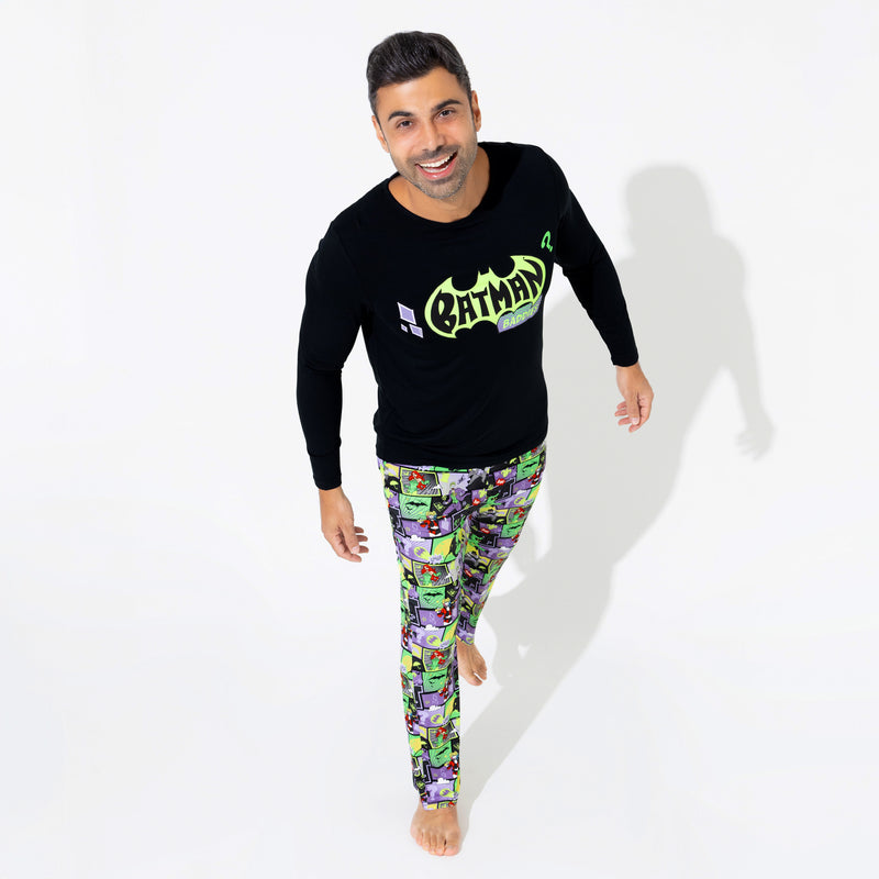 Unleash your inner caped crusader with our Batman Baddies Bamboo Men's Pajama Set! Crafted from soft, breathable bamboo fabric, this pajama set offers ultimate comfort for any fan of the Dark Knight, whether you're battling bedtime villains or unwinding with your favorite comic. Featuring an eye-catching print of Gotham's notorious rogues, it combines playful style with cozy snuggles, perfect for relaxing nights in. The eco-friendly bamboo material is not only gentle on your skin but also kind to the planet, making it a smart choice for the environmentally conscious. Available in various sizes, this pajama set ensures a perfect fit for a comfortable night’s sleep. Embrace your superhero dreams and make every night an adventure! Treat yourself or surprise a fellow fan with the Batman Baddies Bamboo Men's Pajama Set—because even heroes deserve their beauty rest!