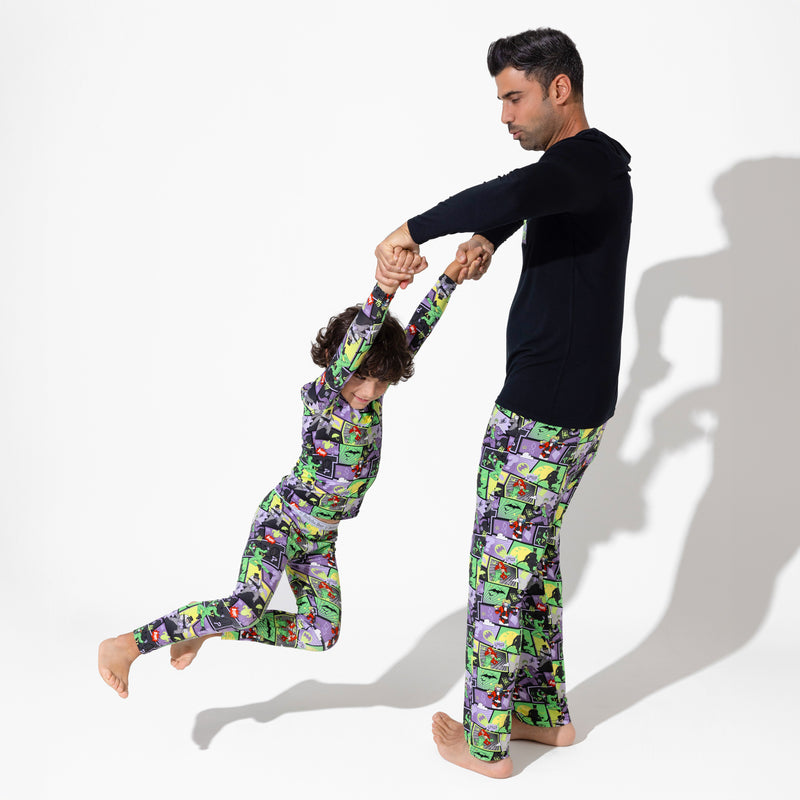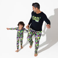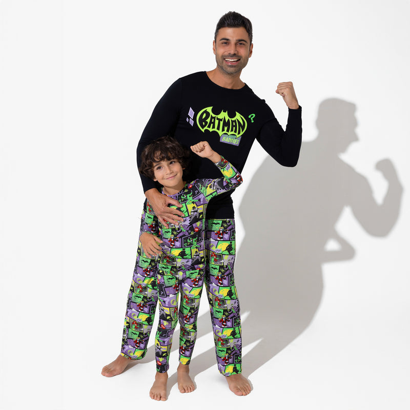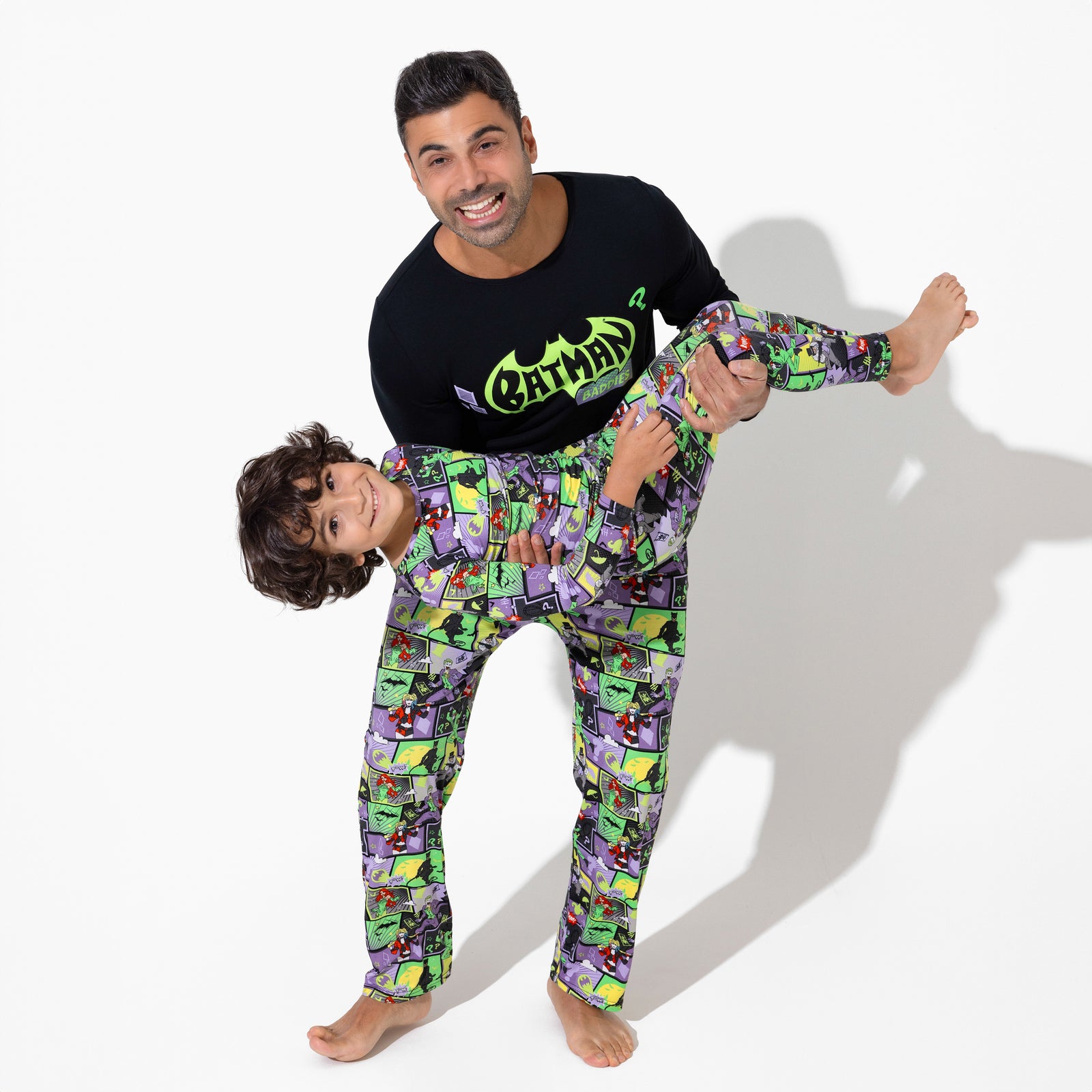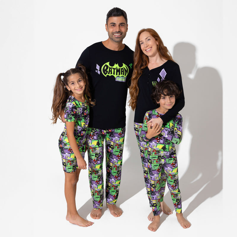 Unleash your inner caped crusader with our Batman Baddies Bamboo Men's Pajama Set! Crafted from soft, breathable bamboo fabric, this pajama set offers ultimate comfort for any fan of the Dark Knight, whether you're battling bedtime villains or unwinding with your favorite comic. Featuring an eye-catching print of Gotham's notorious rogues, it combines playful style with cozy snuggles, perfect for relaxing nights in. The eco-friendly bamboo material is not only gentle on your skin but also kind to the planet, making it a smart choice for the environmentally conscious. Available in various sizes, this pajama set ensures a perfect fit for a comfortable night’s sleep. Embrace your superhero dreams and make every night an adventure! Treat yourself or surprise a fellow fan with the Batman Baddies Bamboo Men's Pajama Set—because even heroes deserve their beauty rest!