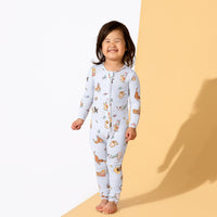 Snuggle up in sweetness with our Dessert Dogs Bamboo Convertible Footie! Crafted from ultra-soft bamboo fabric, this footie pajama features delightful prints of dessert-loving dogs indulging in their favorite treats. From donuts to ice cream cones, your little one will adore the charming designs on these footies. With convenient snaps for easy diaper changes and a convertible design for versatile wear, these footie pajamas are both practical and adorable. Treat your baby to the ultimate in comfort and cuteness with our Dessert Dogs Bamboo Convertible Footie!