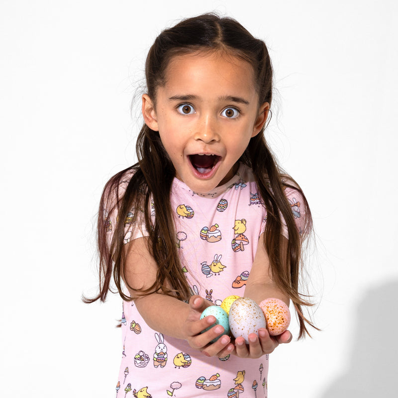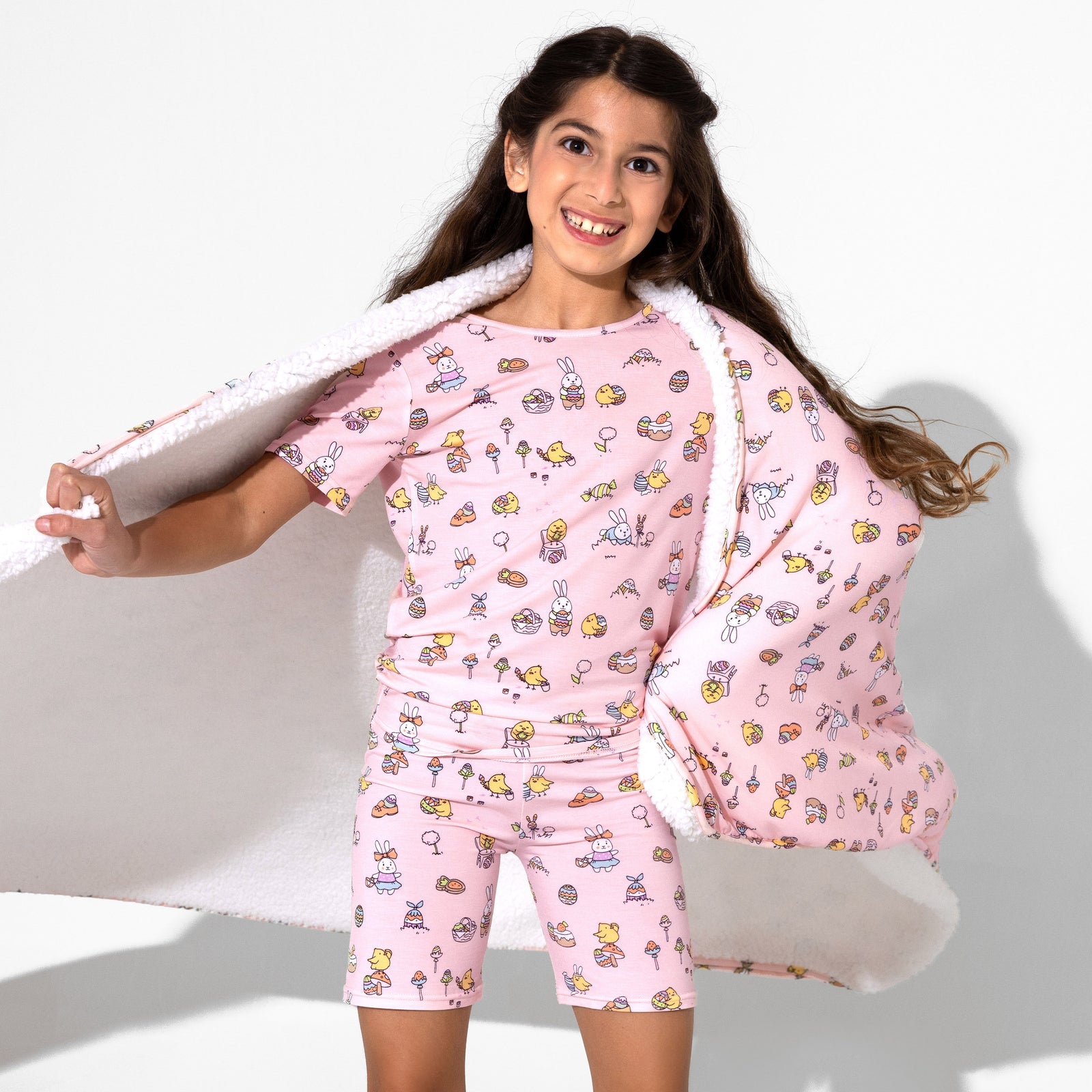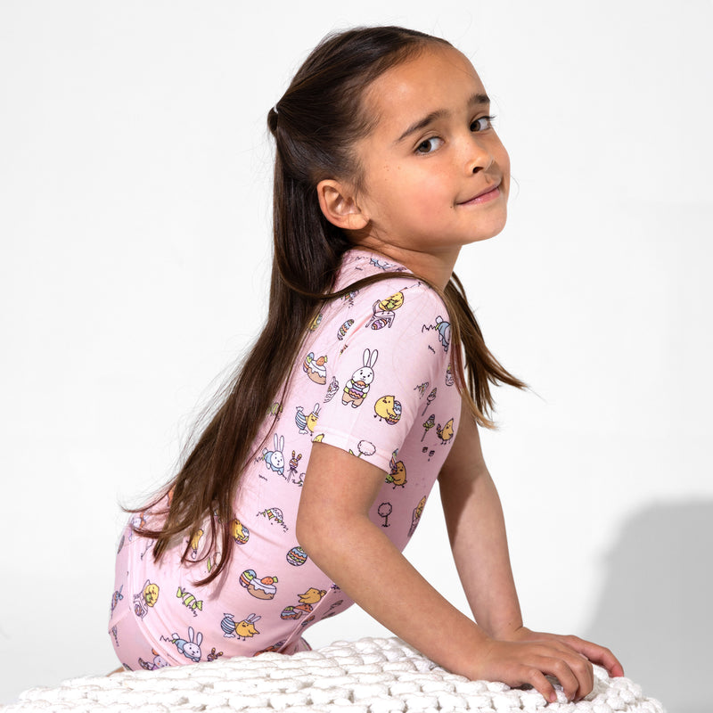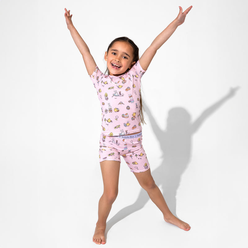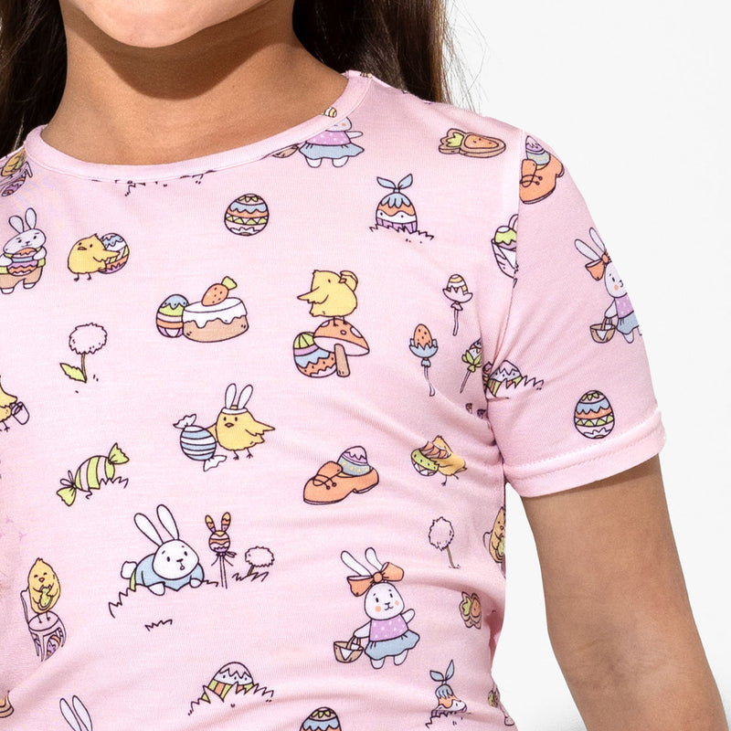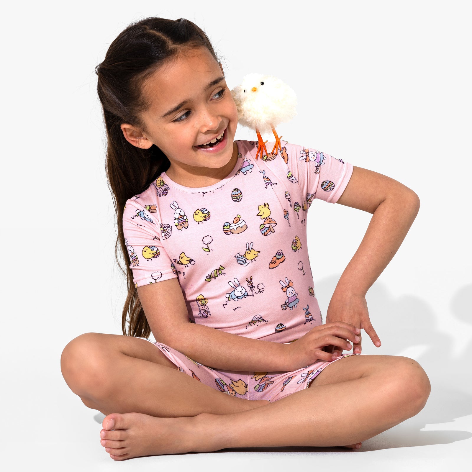 Easter Bunny Pink Bamboo Kids Pajama Short Set