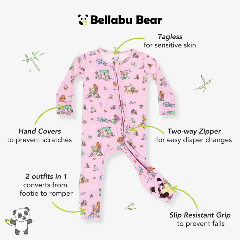Dive into dreamy comfort with our Mermaid Lagoon Bamboo Convertible Footie, designed for tiny mermaids ready to explore the ocean of dreams! Crafted from silky-soft, breathable bamboo fabric, this footie keeps your little sea sprite cozy and cool, whether they’re swimming through nap time or splashing in playtime. The convertible design easily switches from footed to footless, perfect for growing adventurers ready to kick and wiggle with freedom. Adorned with enchanting mermaid scales, shells, and starfish prints, this eco-friendly bamboo sleeper is gentle on sensitive skin and naturally hypoallergenic. Whether it’s a quiet night in the lagoon or a magical slumber party, this footie is the softest treasure your baby could wish for beneath the sea.