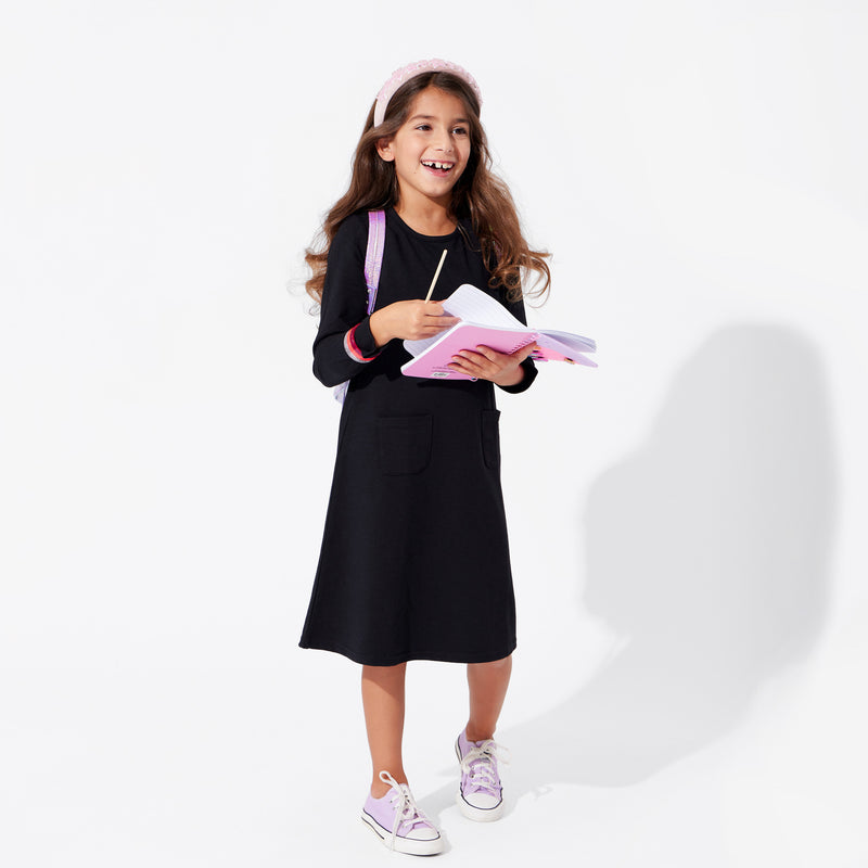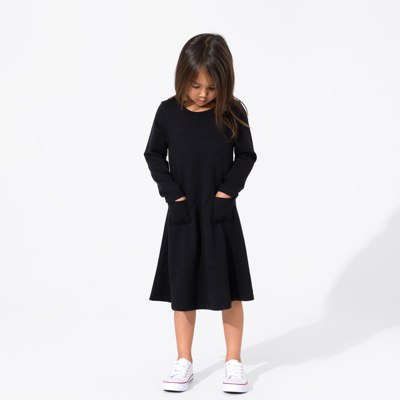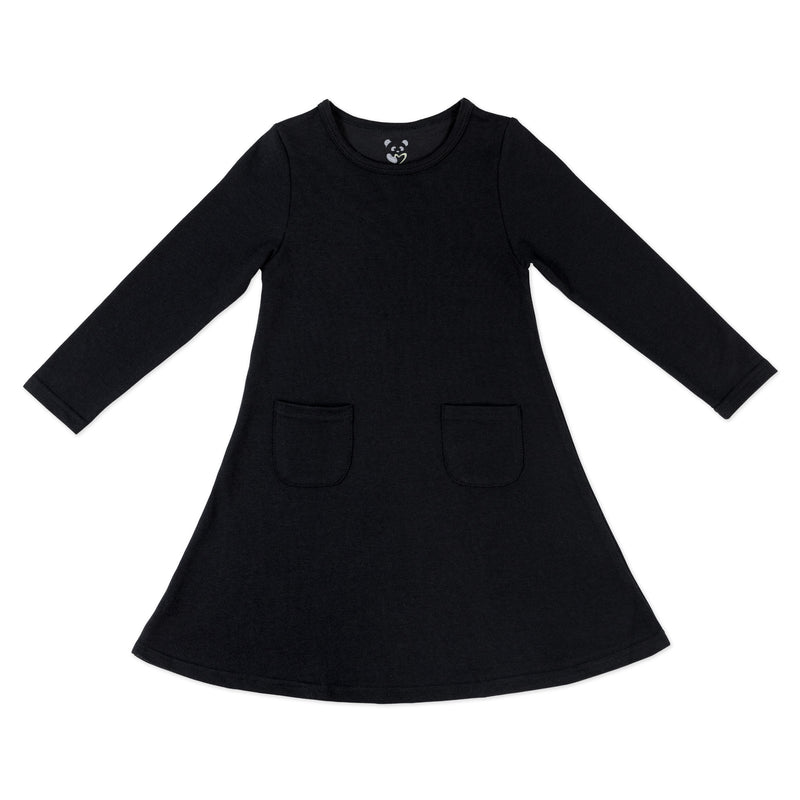Obsidian Black Bamboo Terry Daywear Girls' Long Sleeve Dress