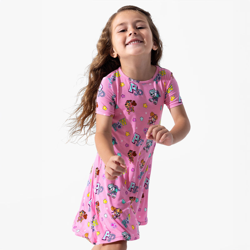 PAW Patrol: Varsity Pink Bamboo Girls' Short Sleeve Dress